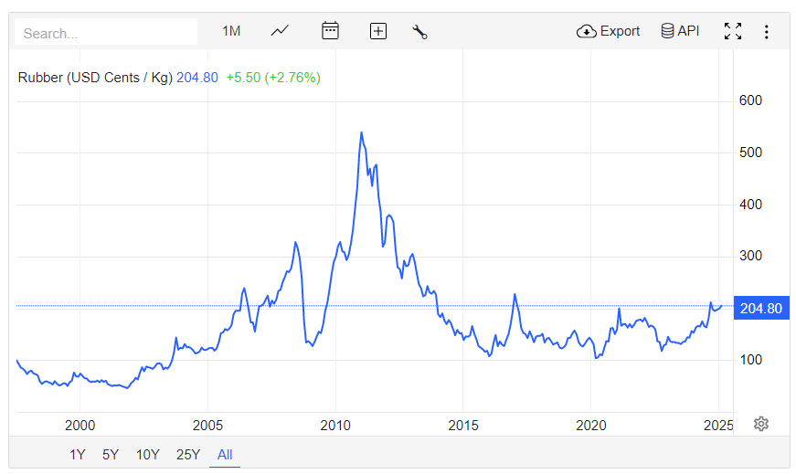 Tổng cục Hải quan công bố giá cao su xuất khẩu bình quân trong T7 2024 đạt 1,655 USD/tấn (+2.9% MoM, +26.8% YoY). Đây cũng là mức giá cao nhất đạt được trong 2 năm qua, kể từ T6 2022. Tính trong 2024, giá xuất khẩu cao su bình quân đạt 1,551 USD/tấn(+14.5% YoY). Chúng tôi kỳ vọng giá cao su sẽ tiếp tục tăng trong các tháng cuối năm do: (1) Ấn Độ dự kiến sẽ phải tăng cường nhập khẩu cao su do thiếu nguồn cung nội địa, (2) mưa lớn tại quốc gia xuất khẩu cao su lớn nhất là Thái Lan có thể gây ra lũ quét làm giảm sản lượng xuất khẩu của nước này. Điều này có thể tác động tích cực tới giá các CP ngành cao su như DRI, GVR, PHR, DPR