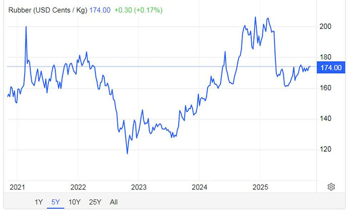 DRI đã công bố BCTC Q3-2025 theo đánh giá của chúng tôi là không thực sự tốt khi lợi nhuận đã đi lùi sau 4 quý liên tục tăng trưởng. Tức là công ty đã không thể tiếp tục bứt lên với mức nền cao cùng kỳ sau 4 quý liên tục tăng trưởng tạo nên mức nền mới cao và để tăng trưởng tiếp đòi hỏi phải có những động lực mới. Động lực tăng trưởng cho 4 quý vừa qua chủ yếu tới từ giá cao su tăng tốt trong hơn một năm qua ( bắt đầu chu kỳ tăng từ Q4-2023 cho tới Q1-2025 ).