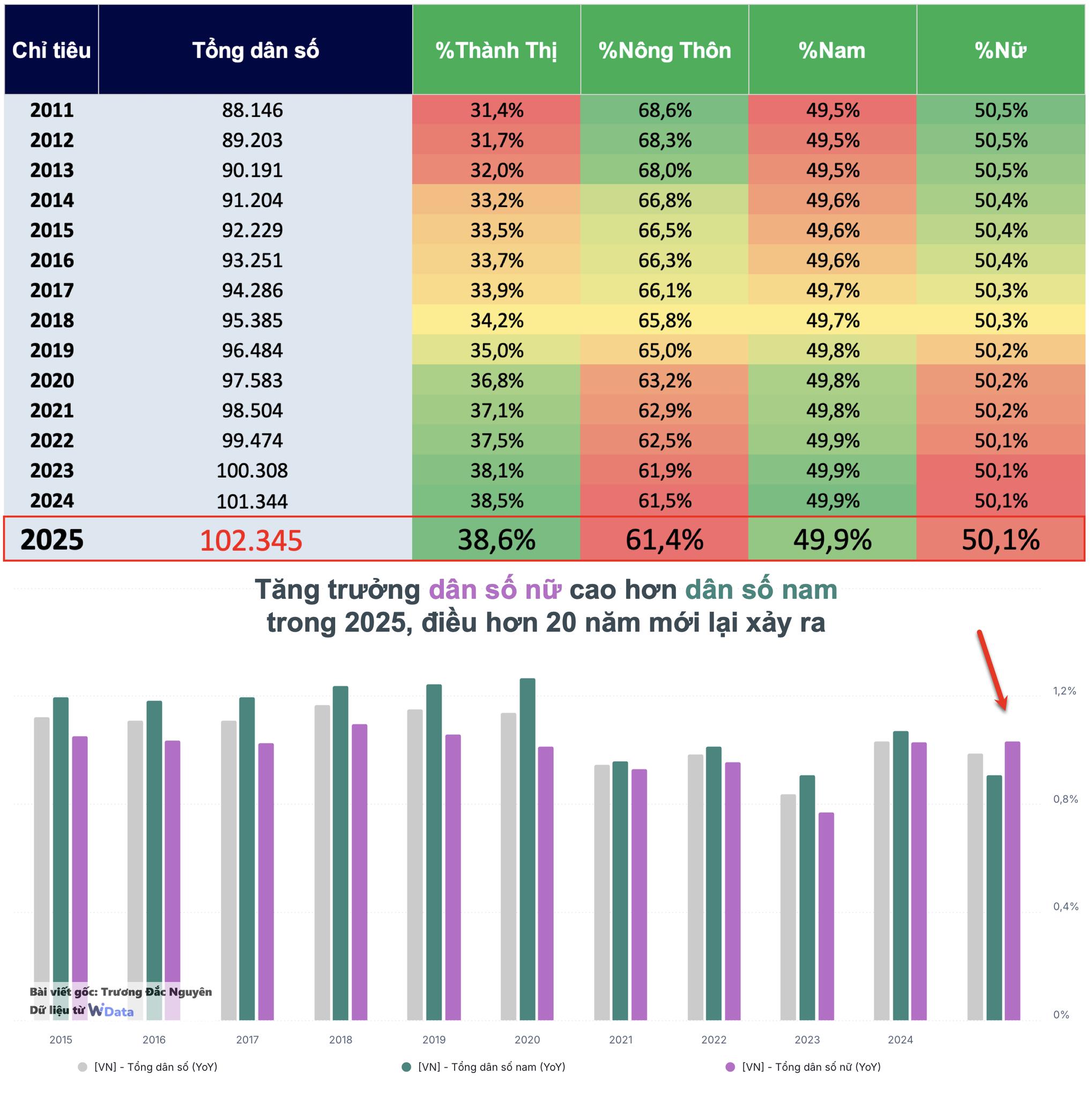 Chính thức tổng dân số 2025 là 102,345 triệu người.