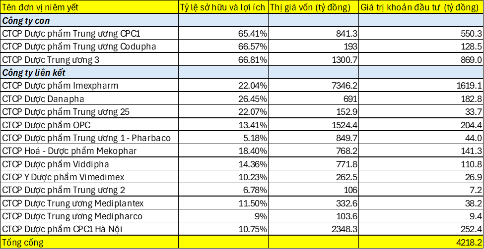 Tổng công ty Dược Việt Nam – CTCP (Vinapharm) là Tổng công ty duy nhất của ngành Dược Việt Nam được thành lập từ năm 1971. Vinapharm hiện đang có cổ phần, vốn góp tại 23 doanh nghiệp thành viên.