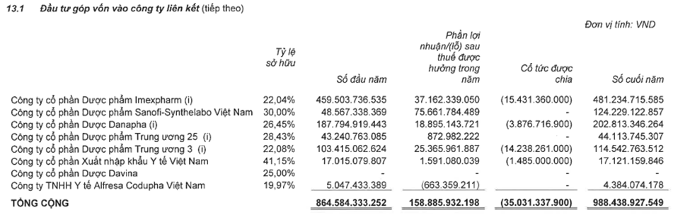 Nhìn vào bảng chi trả cổ tức có thể thấy một trong những khoản đầu tư được chia lợi nhuận lớn nhất của Vinapharm đến từ Sanofi.