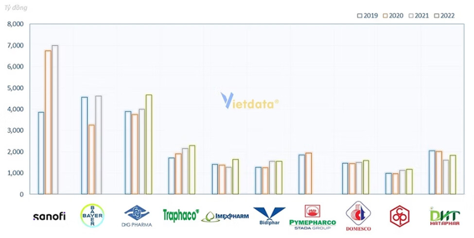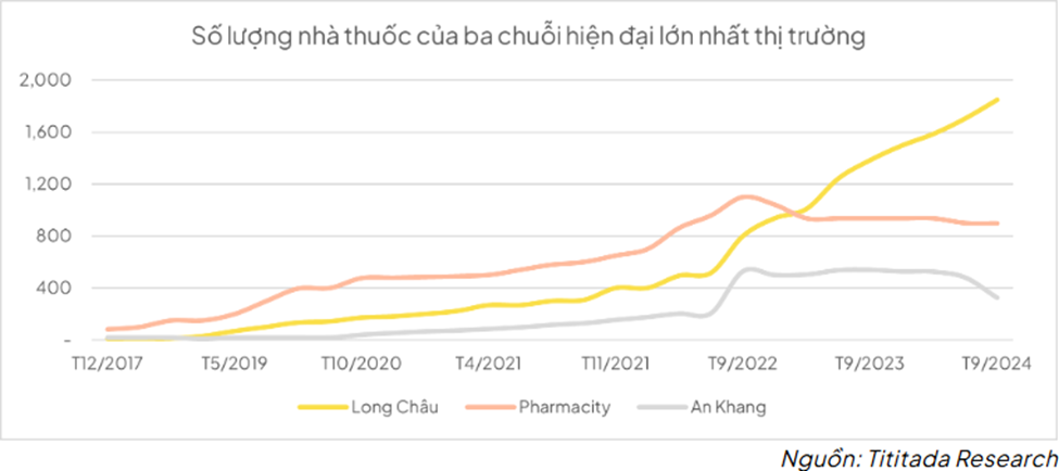 Các công ty dẫn đầu thị trường này bao gồm Long Châu, Pharmacity, An Khang. Trong các năm tới cả 3 chuỗi nhà thuốc này đều có kế hoạch sẽ tiếp tục mở rộng chuỗi cửa hàng lên đến 7,300 cửa hàng vào năm 2025, chiếm đến 16% thị phần, vì vậy kích thích doanh thu ngành dược tăng cao hơn trong 2 - 5 năm tới.