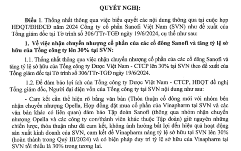 Hiện nay Ban điều hành Vinapharm và Sanofi đang trao đổi, đàm phán để có thể rút ngắn thời gian, sớm hiện thực hiện mục tiêu nâng tỷ lệ sở hữu của Vinapharm tại SVN lên 30% tại thời điểm phù hợp, tuân thủ các quy định, cam kết và thống nhất của các bên. (Chia sẻ của Tổng Giám đốc DVN tại ĐHĐCĐ năm 2023)