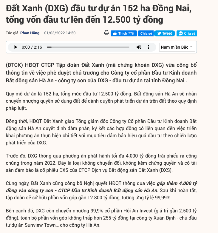 Ngoài quỹ đất 4.200 ha vừa công bố. DXG còn rất nhiều dự án khác đang trong thời điểm hoàn tất thủ tục nên A Thìn chưa công bố. Khi nào công bố bằng Nghị quyết HĐQT như dự án 152 ha ở Đồng Nai và 200 ha ở Bình Phước vừa rồi thì thủ tục đã xong hết rồi.