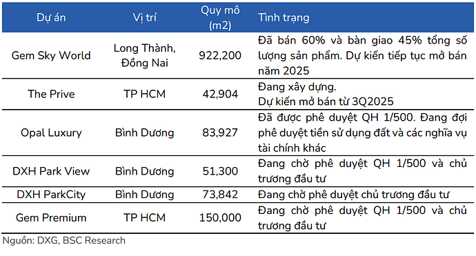 Lượng backlog khổng lồ cho giai đoạn tăng trưởng 2025-2030 của DXG (Nguồn: BSC)
