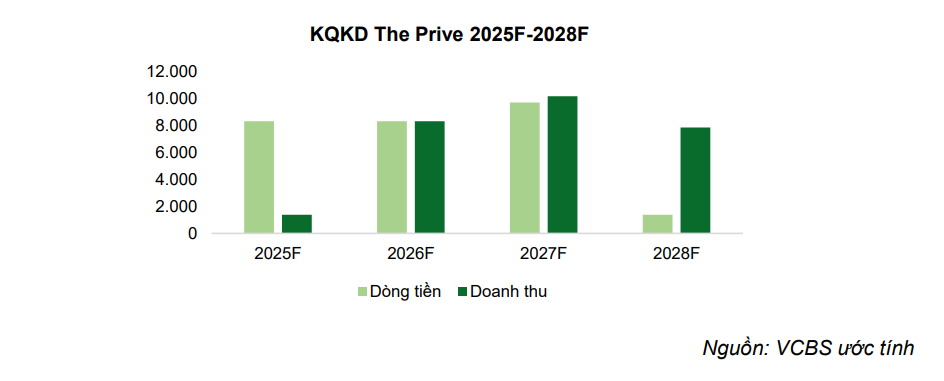 The Privé được quy hoạch gồm 12 tòa tháp chung cư cao cấp, dự kiến chính thức kick off mở bán từ năm 2025 với giá bán quanh ngưỡng 100 triệu đồng/m², phản ánh đúng mặt bằng giá của phân khúc cao cấp tại TP.HCM. Ước tính dự án đem lại dòng tiền bán hàng khoảng 27.000 tỷ đồng trong giai đoạn 2025-2027, hỗ trợ đáng kể cho dòng tiền kinh doanh và đà tăng trưởng của doanh nghiệp. Dự kiến dự án sẽ bắt đầu được ghi nhận doanh thu từ năm 2026, mang lại biên lợi nhuận gộp ấn tượng ~60%, cao vượt trội so với nhiều dự án cùng phân khúc.