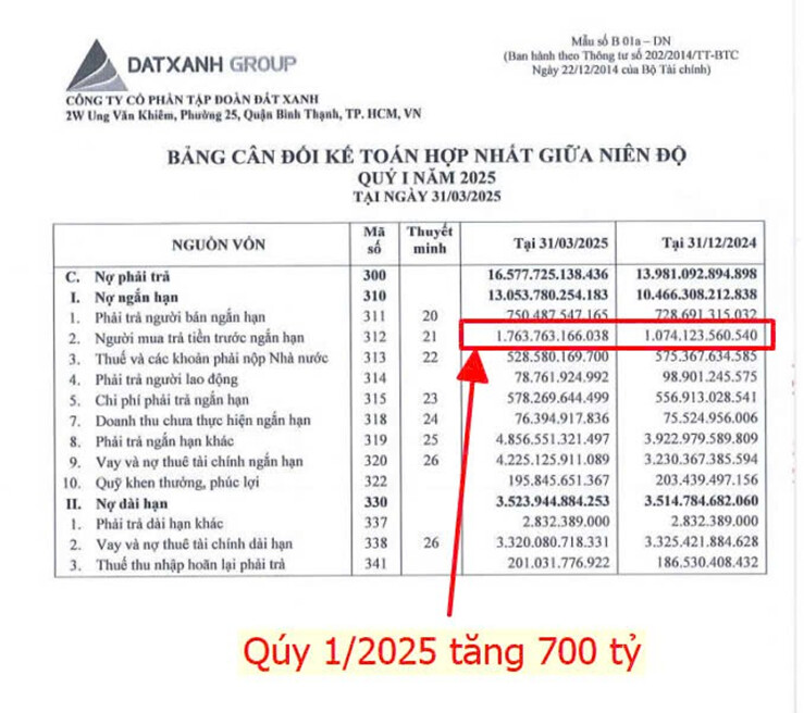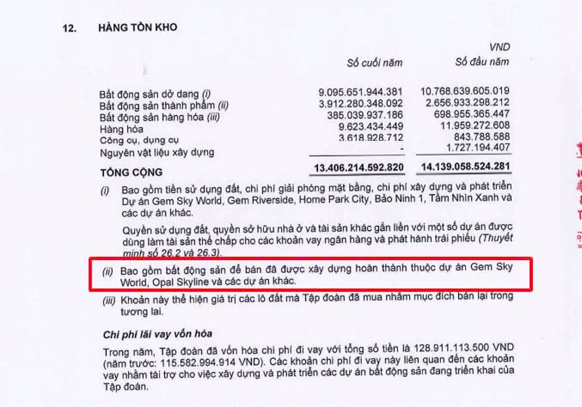 Hết quý 1/2025 tiền người mua trả tiền trước tăng hơn 700 tỷ và gần 4000 tỷ baast động sản thành phẩm đã được xây dựng hoàn thành như Gem Sky Wold, Opal Skyline… Và 9000 tỷ bất động sản dở dang.
