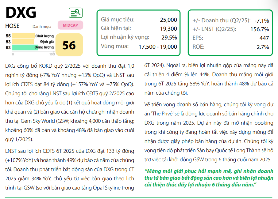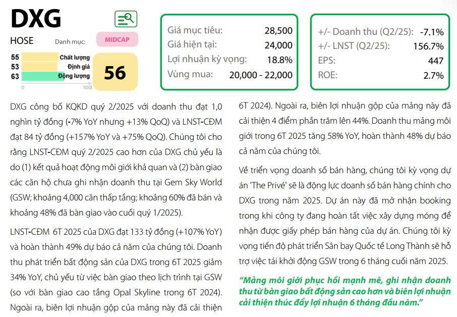 Luận điểm đầu tư của chúng tôi tập trung vào doanh số bán hàng dự kiến trong năm 2025-2026, chủ yếu đến từ hai dự án lớn: Gem Sky World (GSW) và Datxanhhomes Riverside (DXHR).