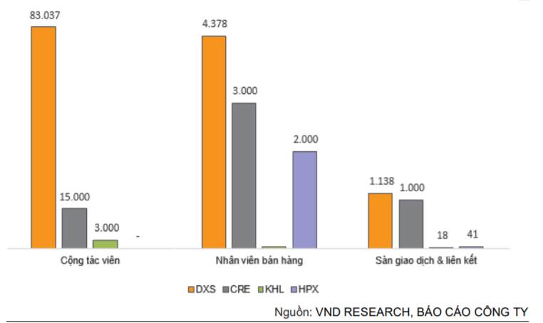 → DXG sẽ tiếp tục khẳng định vị trí dẫn đầu thị trường môi giới BĐS. Với DXS là điểm sáng khi có hơn 132 sàn giao dịch, 1.006 sàn liên kết, 83.037 cộng tác viên, 4.378 nhân viên chính thức và nhiều kênh bán hàng trực tuyến phủ sóng 49/63 tỉnh thành với 45 công ty trực thuộc trên toàn quốc.
