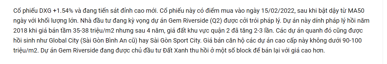 2 mảng kinh doanh lõi của DXG đều đang được kỳ vọng có triển vọng trong quý 4 này và điển hình là năm 2022. Lẽ dĩ nhiên là nó đã phản ánh phần nào vào mức giá.