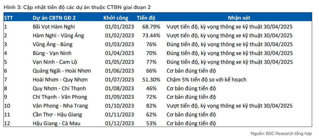 Kỳ vọng đấu thầu bắt đầu từ 2H/2025, với các dự án hầu hết được kỳ vọng thông xe kỹ thuật từ 30/04/2025.