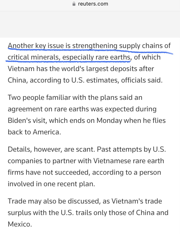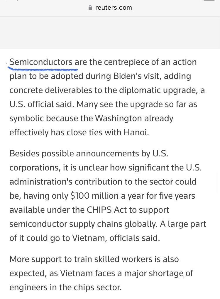 Tóm tắt bằng tiếng Việt: chuyến thăm VN của TT Biden với dàn nhân sự đồ sộ chủ yếu (theo báo Reuters Mỹ) xoay quanh 2 chủ đề nghị sự chính