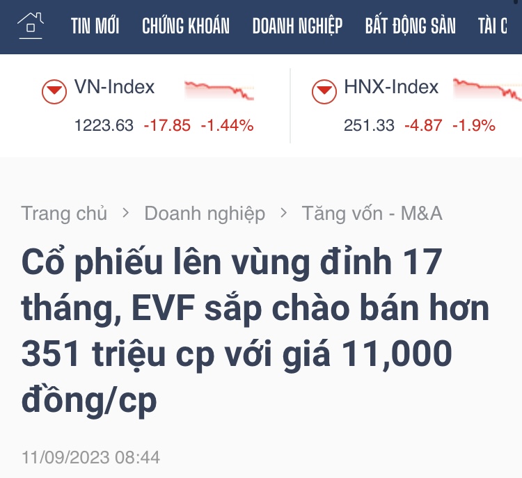 EVF: Công ty Tài chính cổ phần Điện lực (EVF – HOSE) thông báo, ngày 22/9 tới đây sẽ chốt danh sách cổ đông thực hiện quyền mua hơn 351 triệu cổ phiếu phát hành tăng vốn theo tỷ lệ 1:1, với giá chào bán 11.000 đồng/cổ phiếu