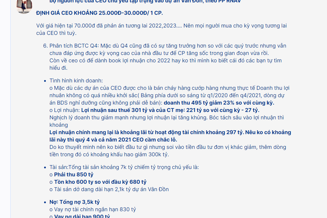 có ông còn định giá CEO thấp nhất là 800k kìa thị trường thuận lợi thì tầm 1,5tr/1 cổ