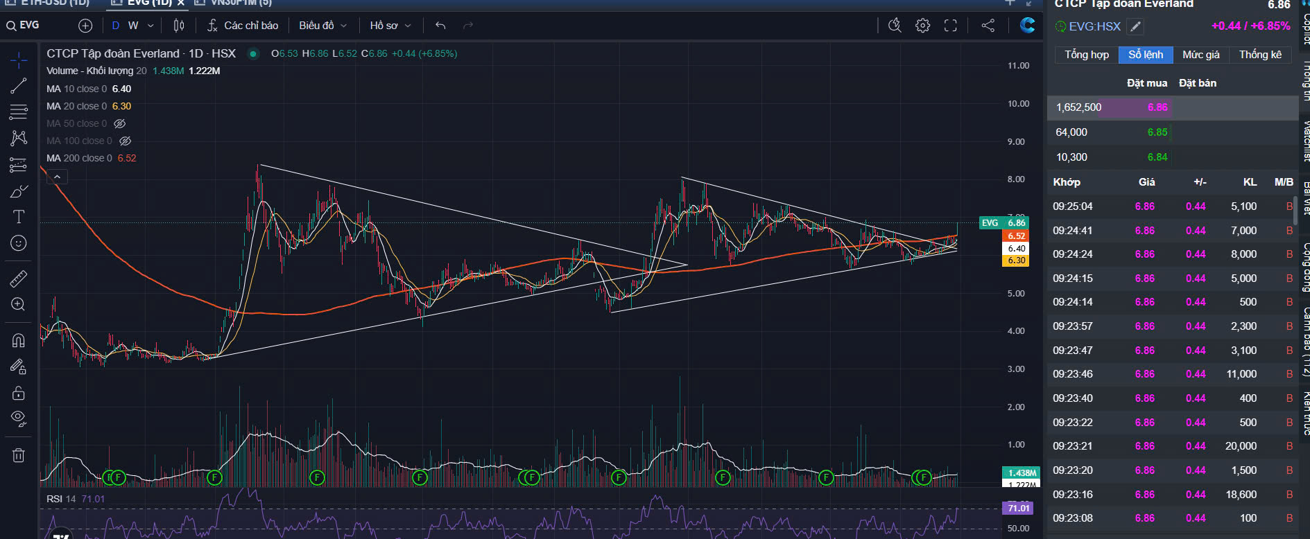 Chưa có tin gì mới hỗ trợ, EVG chỉ đc 1 phiên trần rồi lại xịt thôi.