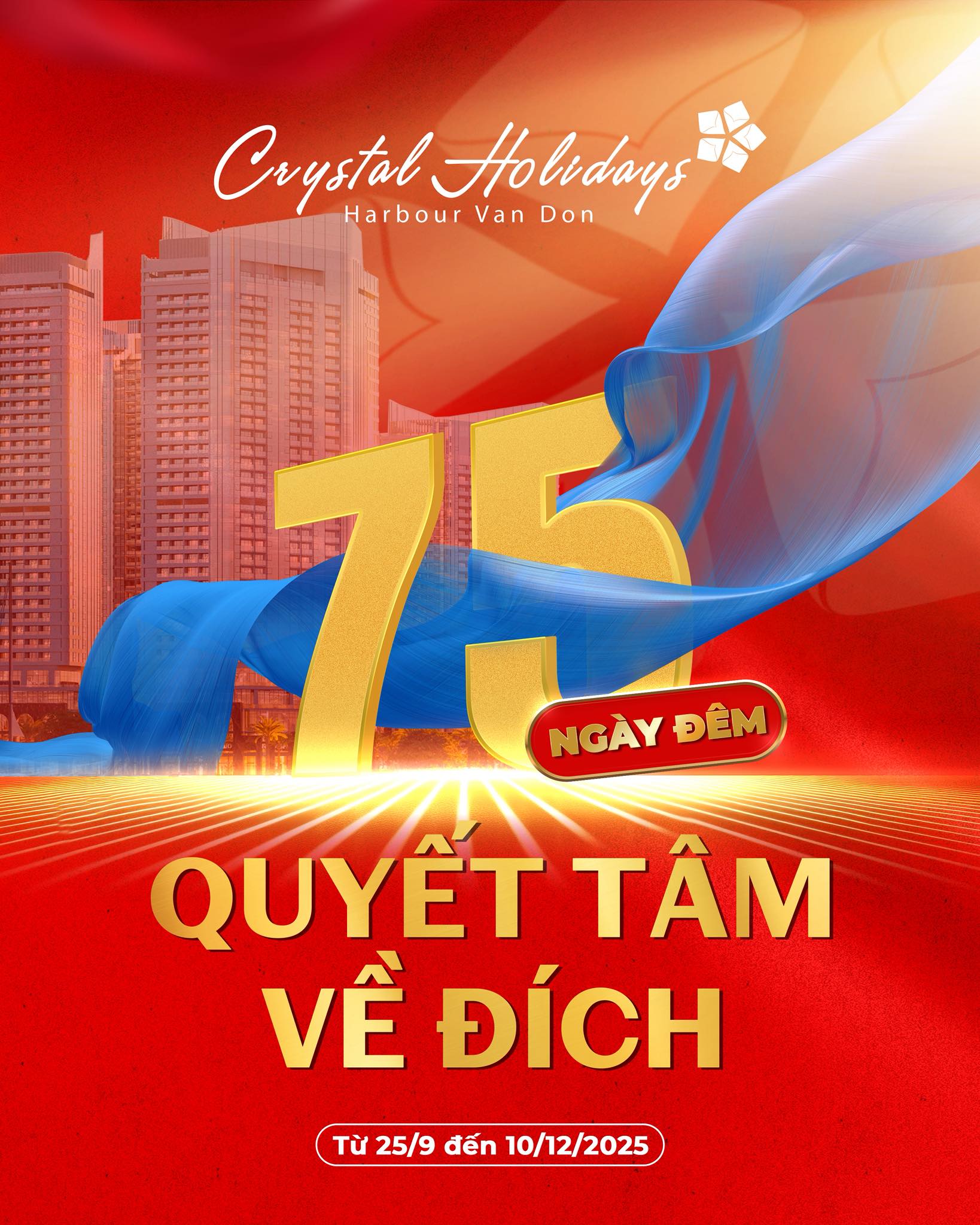 Bắt đầu từ 25/9/2025, Toàn Tập đoàn Everland đã chính thức bước vào chiến dịch 75 ngày đêm cùng bứt phá, tất cả các hạng mục công việc liên quan tới việc thi công, hoàn thiện, chuẩn bị cho việc khánh thành và vận hành ba tòa tháp A-B-F của dự án Crystal Holidays Harbour Vân Đồn sẽ đồng loạt tăng tốc, hướng tới mục tiêu đưa gần 1.000 căn hộ du lịch 5 sao, trung tâm thương mại và trung tâm Hội nghị Quốc tế 1.500 chỗ đi vào vận hành đúng tiến độ, đúng cam kết.