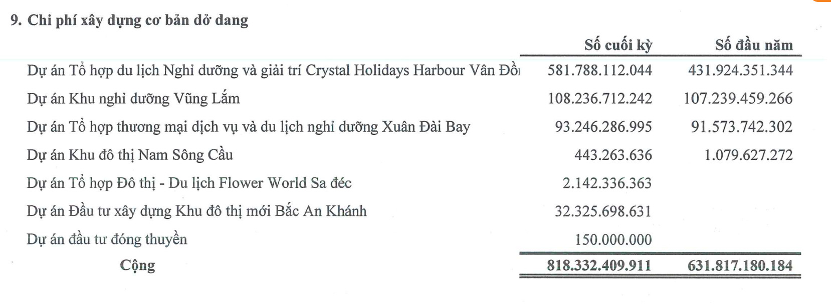 6/ Chi phí xây dựng dở dang có thêm Dự án Sadec (dự kiến quý 4/2023 khởi công, mà giờ chưa biết khi nào khởi công).