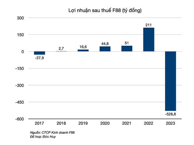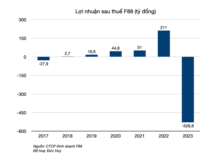 Ngày 1/4, CTCP Kinh doanh F88 công bố kết quả kinh doanh năm 2023, ghi nhận lợi nhuận hoạt động trước dự phòng tăng tăng hơn hai lần so với năm 2022. Tuy nhiên, tính cả năm, mức lỗ sau thuế của F88 được ghi nhận là 528,8 tỷ đồng. Nguyên nhân được giải thích chủ yếu đến từ chính sách trích lập dự phòng của công ty.
