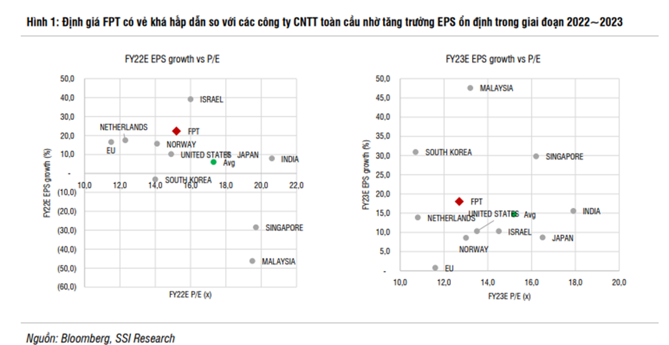 Đang được giao dịch ở mức PE 2022 và PE2023 hấp dẫn lần lượt là 15 và 12.7 dựa trên mức tăng trưởng EPS lần lượt là 22% và 18%. Đưa ra giảm xuống 15% như nêu trên.