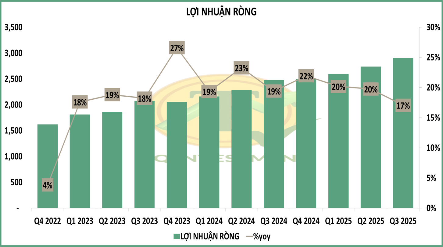 Số liệu LNST của FPT vẫn đạt mức tăng trưởng tốt, chỉ giảm nhẹ về tốc độ SVCK (Hình 10). Không phải đến từ việc FPT cải thiện biên LNG hay quản lý tốt chi phí hơn, đến từ doanh thu tài chính của FPT trong 3Q/2025 tăng trưởng vượt trội so với cùng kỳ. Đến từ tỷ trọng tiền mặt & đầu tư ngắn hạn cao => Lãi tiền gửi gia tăng. Cùng với việc được hưởng lợi từ tỷ giá, khi KH của FPT chủ yếu ở nước ngoài. (Hình 11)