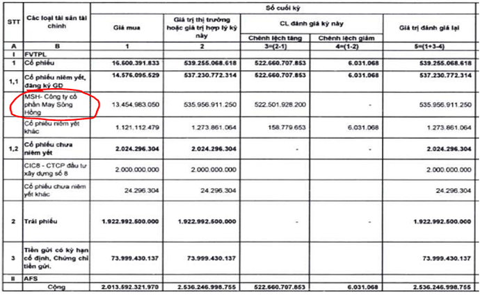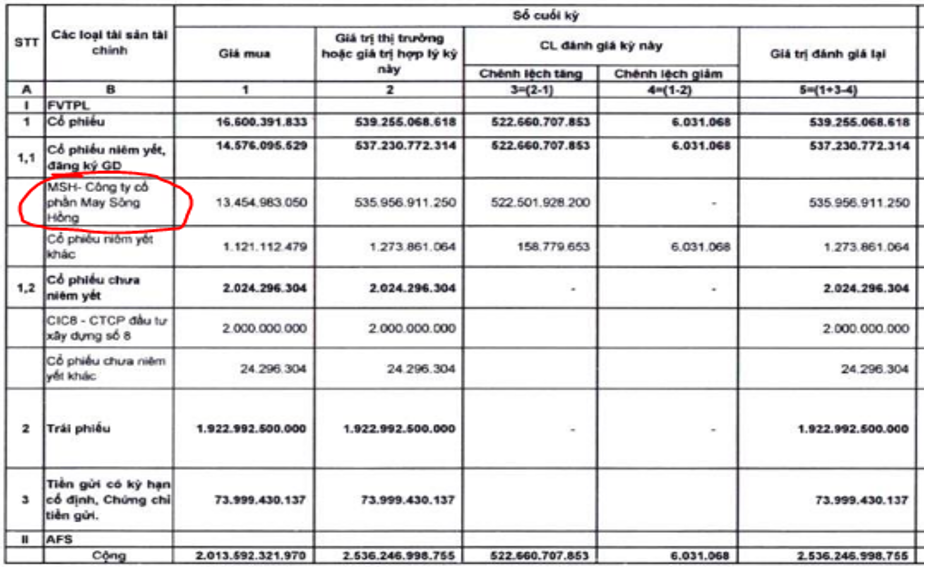 Với trái phiếu, đây là khoản sẽ mang lại lợi nhuận ổn định cho FTS với lãi suất ở mức vừa phải, cao hơn so với gửi ngân hàng nhưng sẽ thấp hơn so với cho vay margin. Về cổ phiếu, sản phẩm chiếm 21% danh mục tự doanh với 523 tỷ đồng và theo thuyết minh từ công ty thì gần như danh mục này được tập trung hết toàn bộ vào cổ phiếu MSH thay vì dàn trải như nhiều công ty khác. (Hình 6)