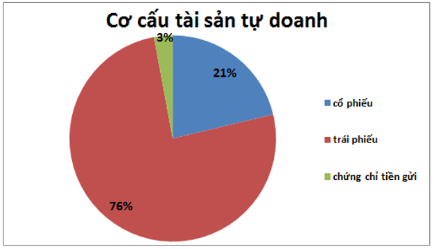 Do tập trung phần lớn tài sản của mình dành cho cho vay nên tài sản tự doanh của FTS là khá hạn chế khi chỉ đạt 2,536 tỷ đồng, chiếm 22.5% tổng tài sản của công ty. Cơ cấu tài sản tự doanh của FTS cũng phần lớn tập trung vào trái phiếu với tỉ trọng 76% danh mục. Tiếp đến là cổ phiếu với 21% và 3% còn lại là chứng chỉ tiền gửi. (Hình 5)