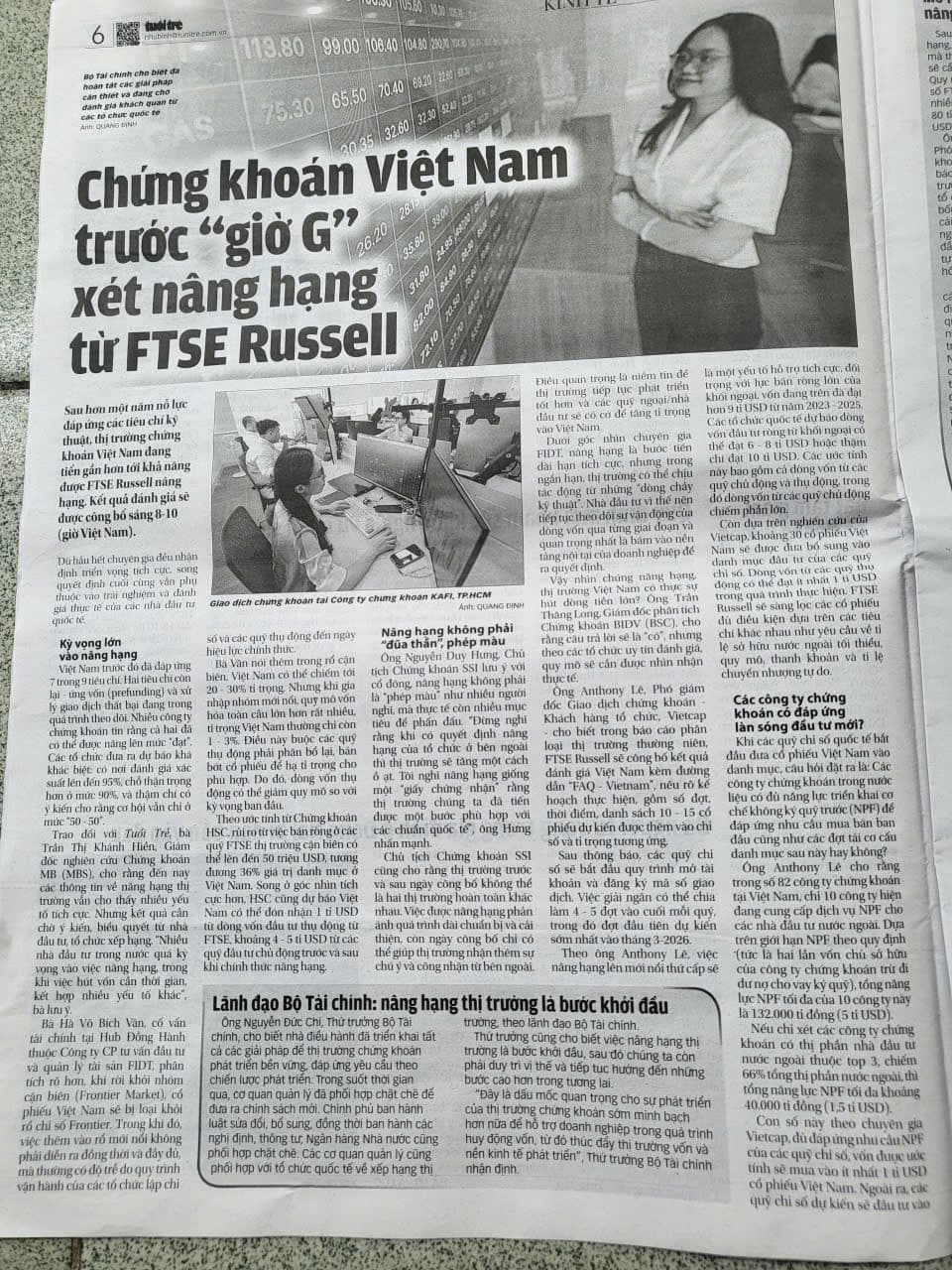 Theo nguồn thông tin chắc nhưng chưa ra mặt báo, nâng hạng FTSE hoàn tất thông chốt 100%.
