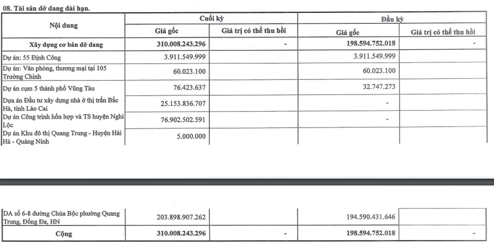 Mảng Chi phí SXKD dở dang bao gồm 35 tỷ tiền căn hộ B6 tồn kho cũng là một nguồn doanh thu kì vọng khi thị trường BĐS và nhà ở, chung cư đang tích cực dần.
