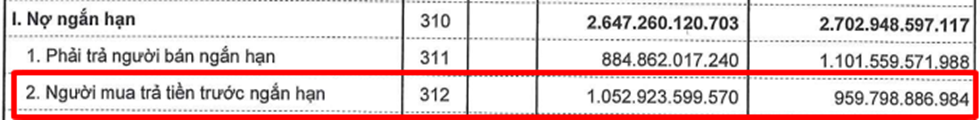 Mặc dù doanh nghiệp báo cáo lỗ liên tiếp 2 quý gần nhất nhưng Mục người mua trả tiền trước ngắn hạn chính là doanh thu tiềm năng trong tương lai của doanh nghiệp và là 1 con số cực lớn (gấp 5 lần doanh thu 1 quý).
