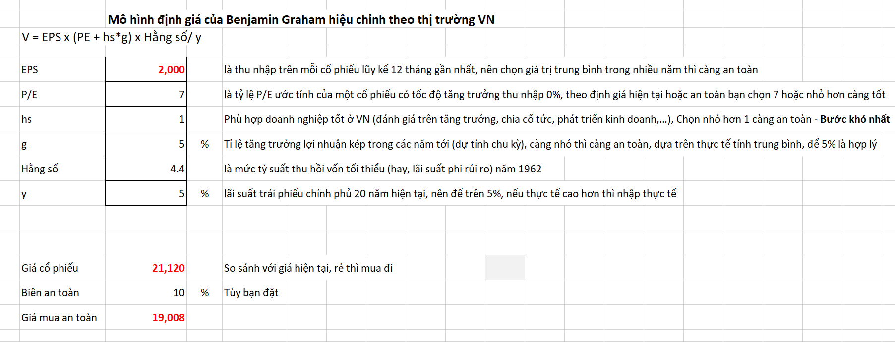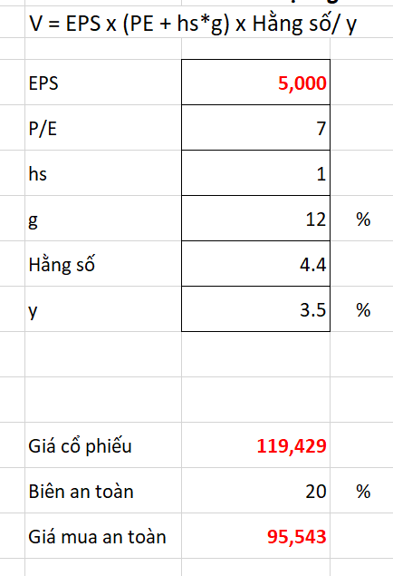 Các bạn mới chưa có kinh nghiệm thì áp dụng các kịch bản xấu, và bình thường của công ty hiện tại, để đưa ra các mức giá an toàn. Biên an toàn bạn là do bạn (phải linh động trong hoàn cảnh thị trường hiện tại).