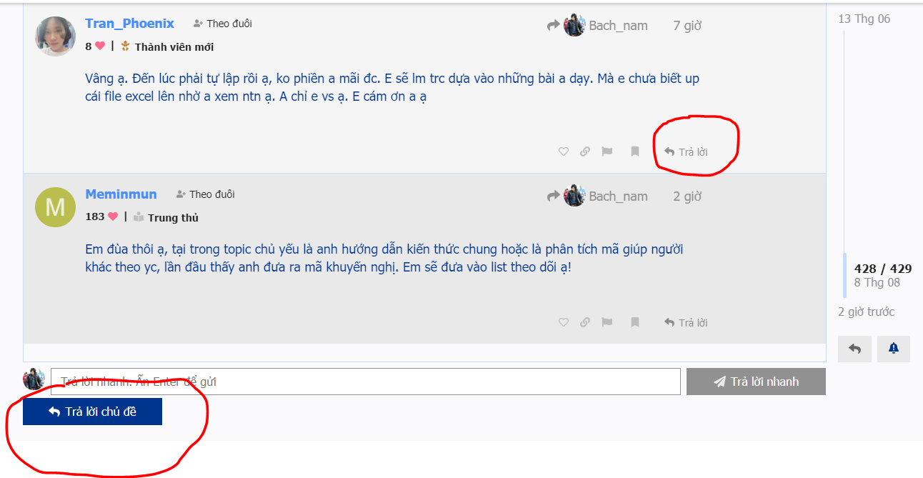 Vâng ạ. Đến lúc phải tự lập rồi ạ, ko phiền a mãi đc. E sẽ lm trc dựa vào những bài a dạy. Mà e chưa biết up cái file excel lên nhờ a xem ntn ạ. A chỉ e vs ạ. E cám ơn a ạ