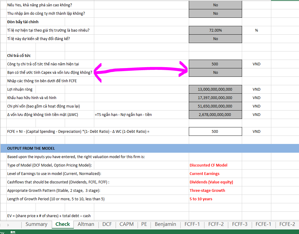 Khi trả lời Yes thì sẽ đưa bạn đến định giá FCFF hoặc FCFE, bài toán phức tạp hơn nhiều. Khi đó phải nghiên cứu kỹ công ty và đưa ra mức hợp lý và an toàn. Ai làm tốt thì sẽ biết được cơ hội đầu tư vào công ty là như thế nào? Và biết được giá cổ phiếu công ty đang rẻ hay đang đắt.