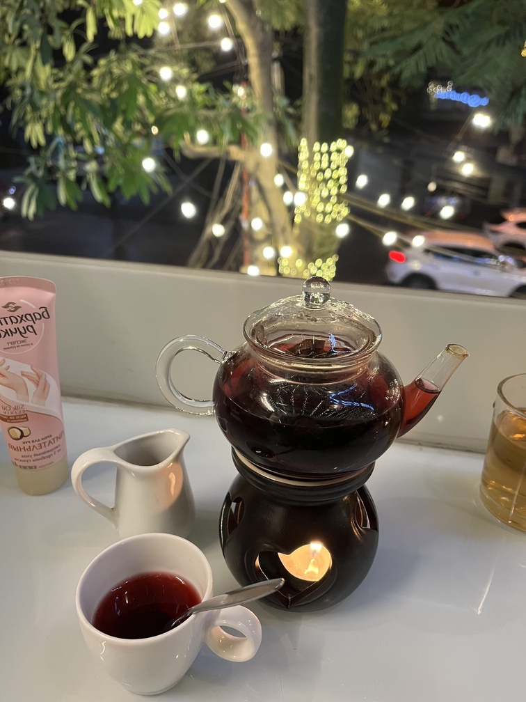 dạ trà hoa atiso đỏ cùng chút mật ong loãng bác ạ, tối chủ nhật nhâm nhi ngắm đường phố