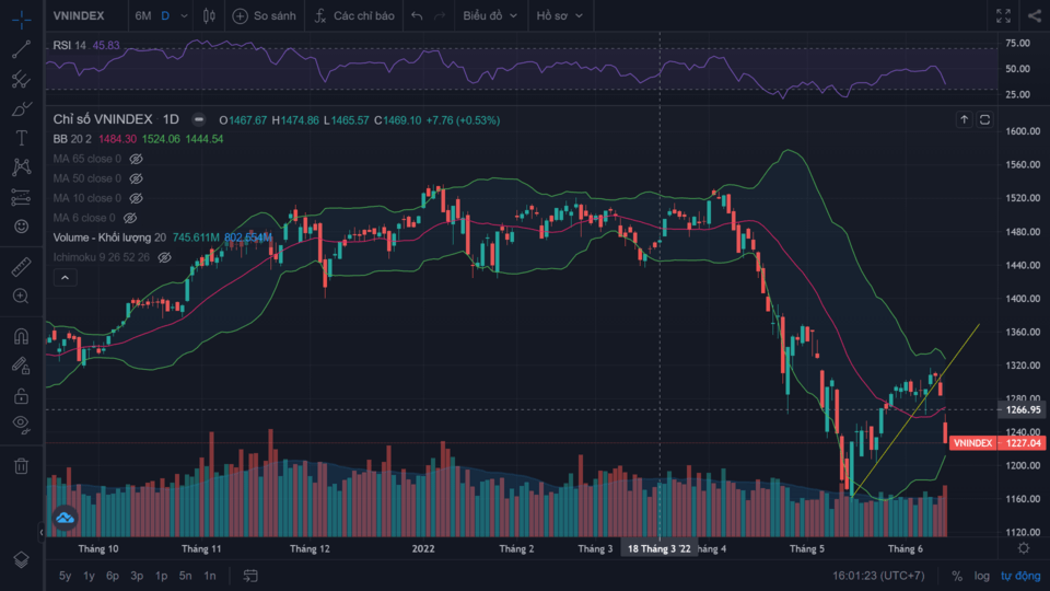 Có phải ý bạn là gì vào nền giá trước để xác định hỗ trợ, kháng cự ko? Tôi chỉ thích TA, bạn dạy cho tôi nhé. Tôi nhìn nến VNi ngày 7/6 thực sự thấy đẹp, nến rút chân + vol lớn nên ngày 8/6 tôi có mua thăm dò mấy con chứng khoán vậy mà nay phải bán giá sàn, ngày 8/6 VNi gặp kháng cự tại 1515 nên có râu nến trên khá dài + cầu chưa mạnh vol nhỏ chưa vượt đc kháng cư, tôi thấy vẫn ổn, ngày 9/6 nến đỏ thân nhỏ + vol nhỏ tôi cũng chưa hiểu lắm về ý vol nhỏ và nếu nhìn vào 3 cây nến đó thì thấy đâu có gì nguy hiểm, bạn rảnh thì dạy thêm cho tôi với, cám ơn bạn!
