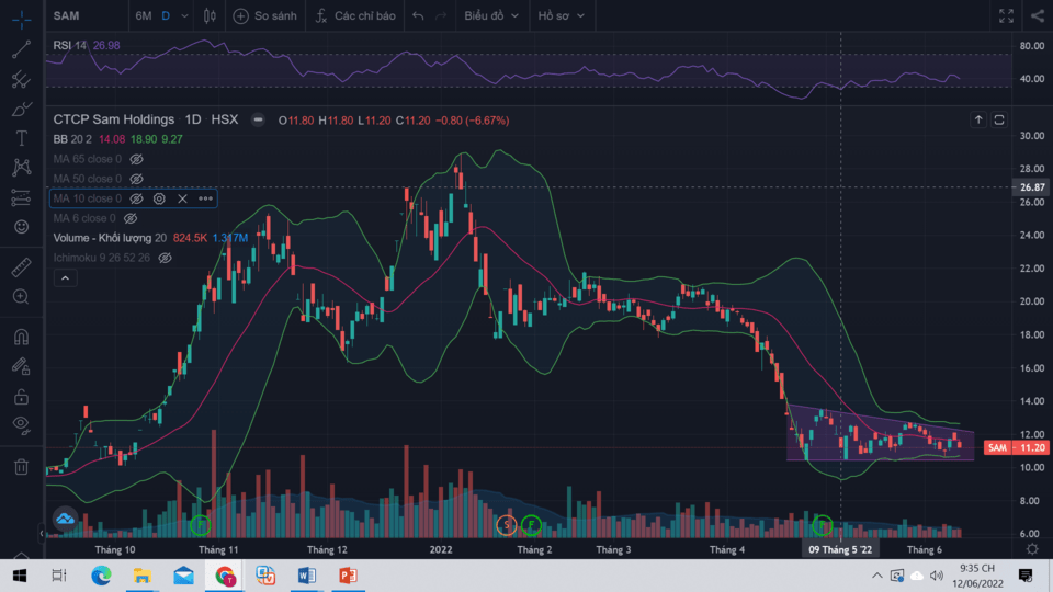 Tôi vẫn còn cầm 1/2 Sam và nhờ bác tư vấn về Sam. Tôi vẽ thế này đc ko bác, và hiểu rằng nếu vượt đường xu hướng trên thì mua thêm, ko vượt đc thì bán và hỗ trợ là đường viền dưới