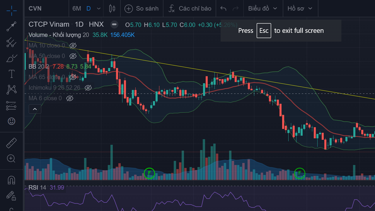 Trước là chart CVN, khi cổ phiếu sideway đi lên tôi thấy chart rất đẹp nên ko bán, mãi đến khi về 6,6 mới bán huề. Sau này nhìn lại thì tại nến phân vân tại đỉnh có vol rất thấp, vậy đó có phải là dấu hiệu để bán ko?