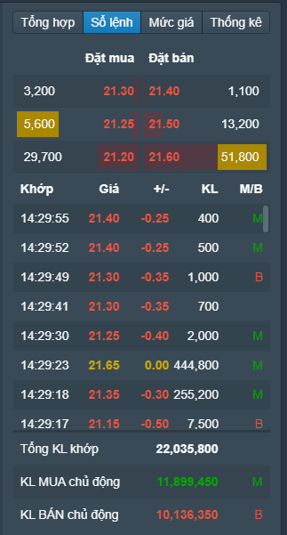 HPG giá tốt nhất là lúc trong phiên có 21.65