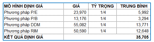 Người viết sử dụng dữ liệu P/E và P/B trung bình ngành, kết hợp với DDM (Dividend Discount Model) và RIM (Residual Income Model) để đảm bảo tính khách quan và tiến hành định giá doanh nghiệp. Mức P/E và P/B trung bình lần lượt là 9.88 và 1.06.