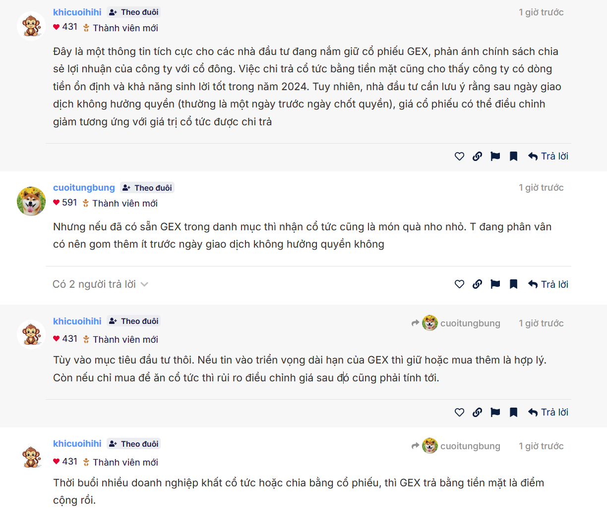 Thời buổi nhiều doanh nghiệp khất cổ tức hoặc chia bằng cổ phiếu, thì GEX trả bằng tiền mặt là điểm cộng rồi.