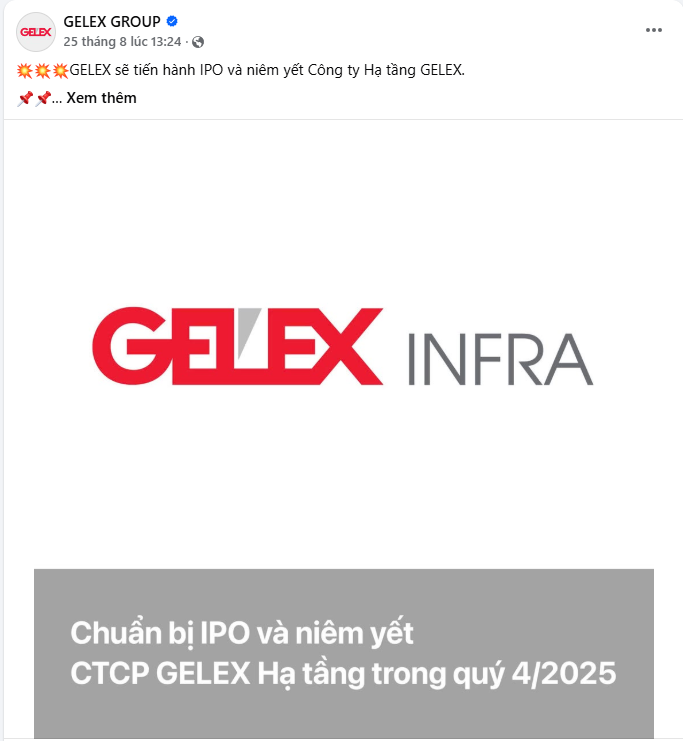 Theo thông tin mới nhận thì khả năng cao IPO gelex hạ tầng gia khởi điểm ngang bằng GEE lần đầu tiên IPO các anh nhé .
