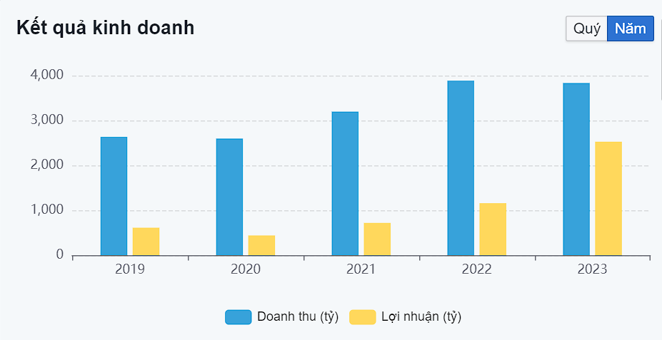 - Lợi nhuận: Lợi nhuận sau thuế của GMD cũng có xu hướng tăng trưởng đều đặn từ năm 2019 đến năm 2023, đạt mức cao nhất vào năm 2023 với 2533.93 tỷ đồng.