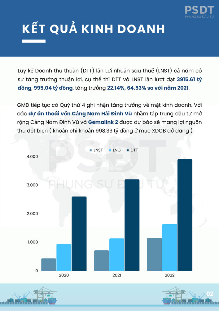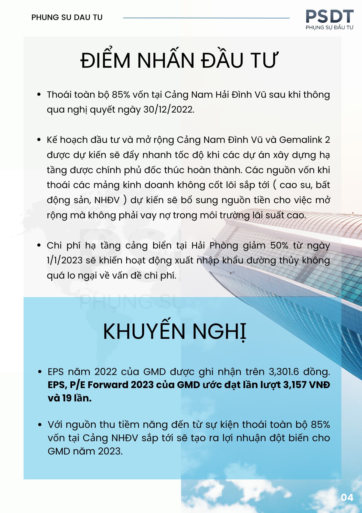 Với nguồn thu tiềm năng đến từ sự kiện thoái toàn bộ 85% vốn tại Cảng NHĐV sắp tới sẽ tạo ra lợi nhuận đột biến cho GMD năm 2023.