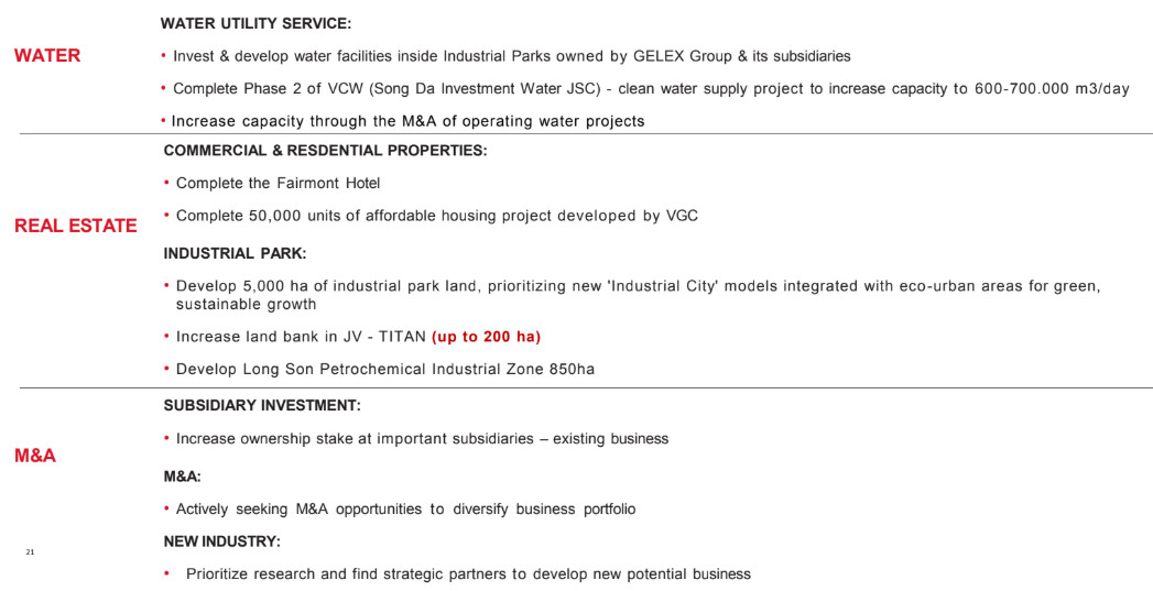 M&A: Chủ động tìm kiếm cơ hội M&A để đa dạng hóa danh mục kinh doanh.