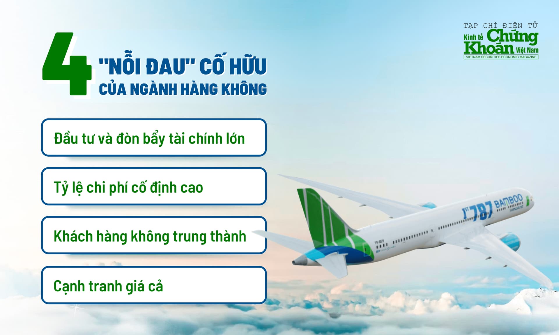 Các chuyên gia cũng chỉ ra rằng, nhà quản trị doanh nghiệp hàng không sẽ luôn phải “chịu đựng” và xử lý bốn “nỗi đau” (pain point) cố hữu do đặc thù riêng biệt của ngành hàng không, bao gồm: vấn đề đầu tư và đòn bẩy tài chính lớn, tỷ lệ chi phí cố định cao, vấn đề giữ chân khách hàng và sự cạnh tranh gay gắt về giá.