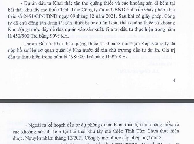 nhiều mỏ mới đưa vào khai thác từ cuối năm 2021 … như mỏ thiếc tĩnh túc