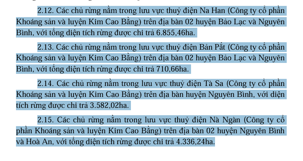 Các nhà máy điện chủ yếu phục vụ chính cho hoạt động luyện khoáng sản của công ty. Công suất phát năm 2024 đạt hơn 6 triệu kwh => Về cơ bản là DN tự chủ nguồn điện, nên biên lợi nhuận của KCB luôn duy trì mức tầm 35%. - Tổng quỹ đất quản lý khai thác: 1.444.510m2 (tức khoảng 144ha)
