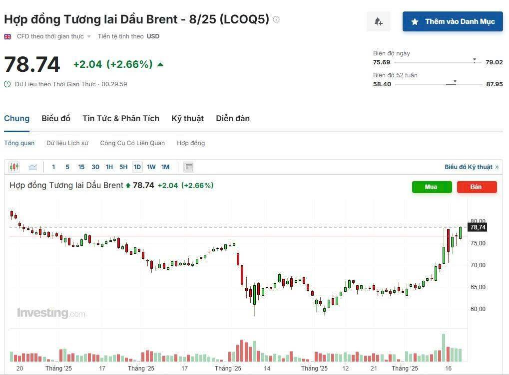 Giá dầu brent tiếp tục tăng hơn 2%, vượt mốc 78