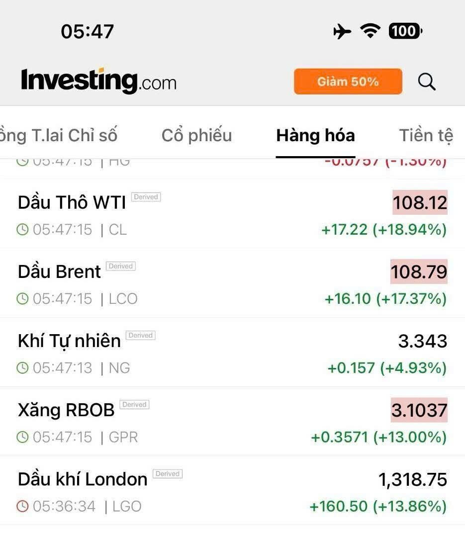 Giá dầu tăng điên rồi. Lên mốc 107$ tăng tiếp 17%