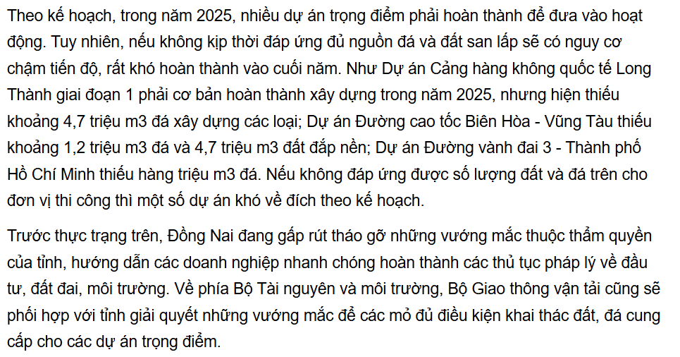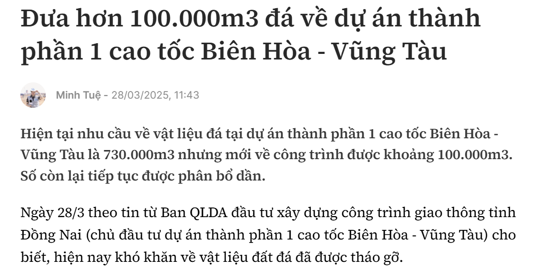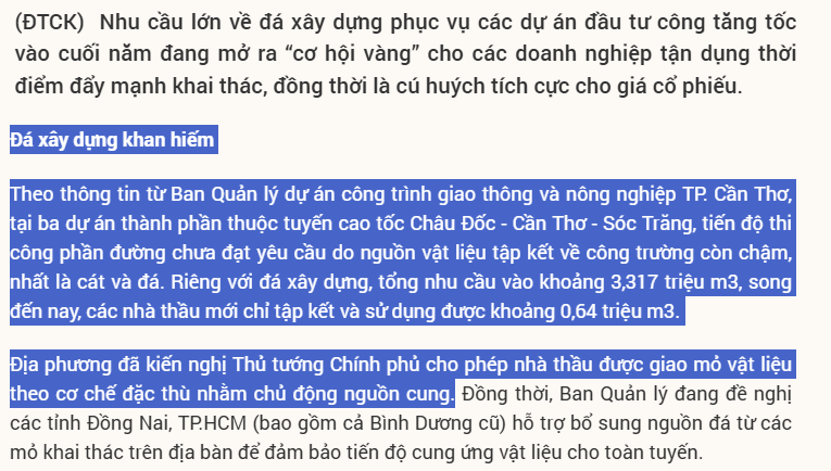 Lại một siêu cao tốc nữa khởi công, gánh nặng cấp đá lại đặt nên vai CKA. Rất có thể tiếp tục áp dụng cơ chế đặc thì cấp về mỏ vật liệu thì CKA tiếp tục được gia tăng thời hạn khai thác và công suất!