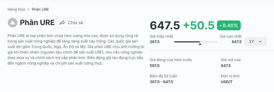 Quá khiếp! Giá Phân Ure tiếp tục bật tăng 8%, trong 1 tuần qua đã tăng 34%.